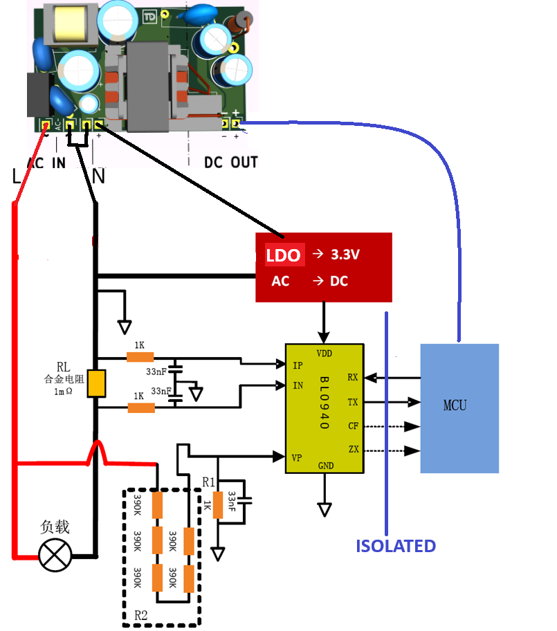 In order to use Aux power to supply the power measure IC. We need a little modification in PCB: