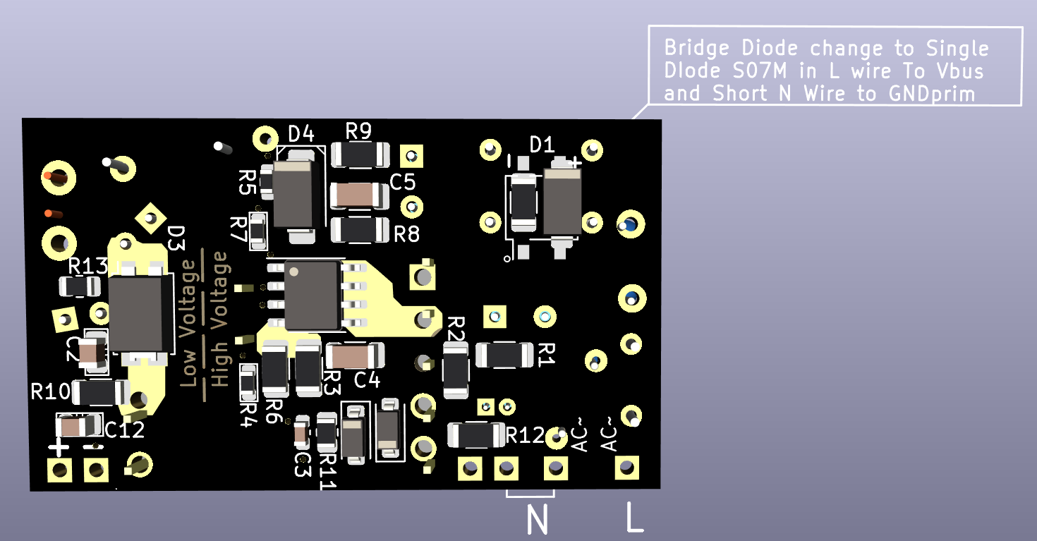 In order to use Aux power to supply the power measure IC. weWe need a little modifimodification in PCB: