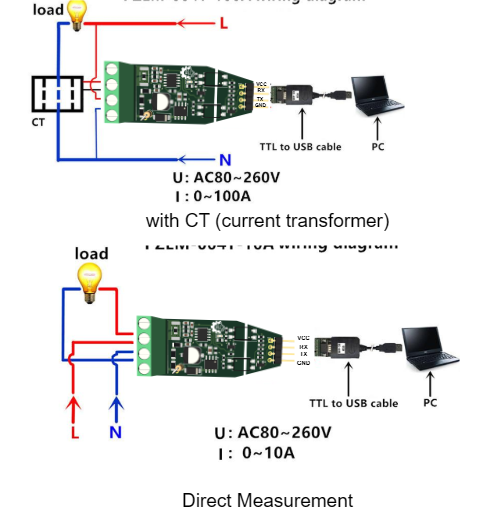 This module is mainly used for measuring AC voltage, current, active power, frequency, power factor and active energy, the module is without display function, the data is read through the TTL interface.