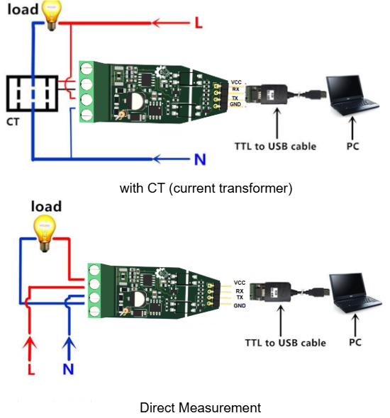 This module is mainly used for measuring AC voltage, current, active power, frequency, power factor and active energy, the module is without display function, the data is read through the TTL interface.